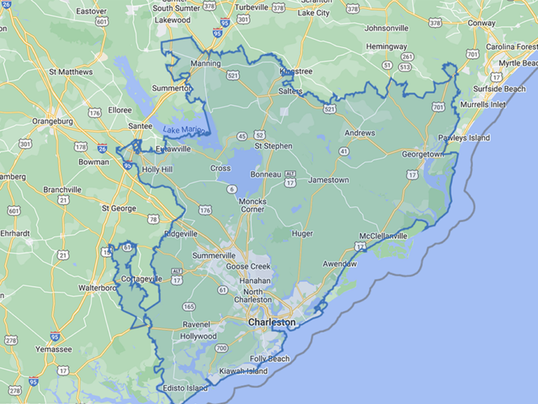 Adams Run, Andrews, Awendaw, Bonneau, Charleston, Charleston Afb, Cordesville, Cross, Edisto, Island, Eutawville, Folly Beach, Georgetown, Goose Creek, Greeleyville, Hanahan, Holly Hill, Hollywood, Huger, Isle of Palms, Jamestown, Johns Island, Ladson, Lane, Manning, McClellanville, Moncks Corner, Mount Pleasant, North Charleston, Pineville, Pinopolis, Ravenel, Ridgeville, Round O, Saint Stephen, Salters, Sullivans Island, Summerville, Wadmalaw Island