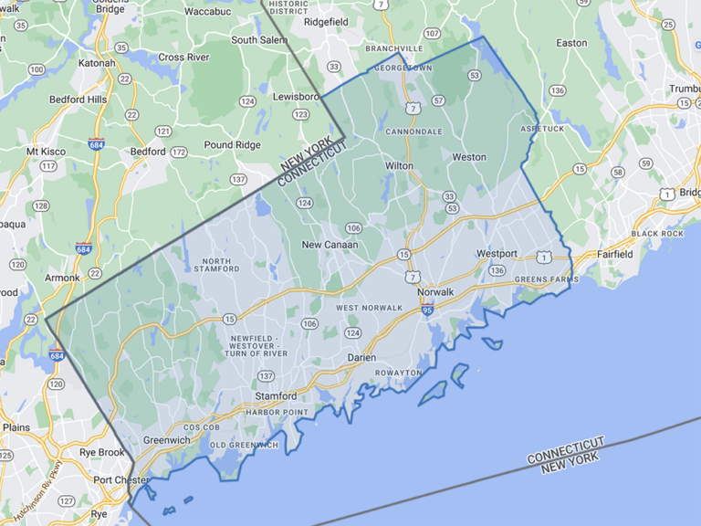 Cos Cob, Darien, Greenwich, New Canaan, Norwalk, Old Greenwich, Riverside, Stamford, Weston, Westport, Wilton, and the surrounding areas