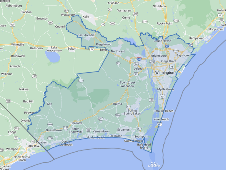 Autumn Hall, Bayshore, Brunswick Forest, Carolina Beach, Castle Hayne, Compass Pointe, Forest Hills, Hampstead, Jacksonville, Kure Beach, Landfall, Leland, Myrtle Grove, Northchase, Ogden, Pine Valley, Porter's Neck, Surf City, Topsail, Waterford, Wilmington, Wrightsboro, Wrightsville Beach