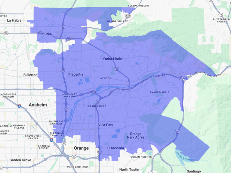 Anaheim, Anaheim Hills, Brea, Fullerton, Orange, Placentia, Villa Park, Yorba Linda